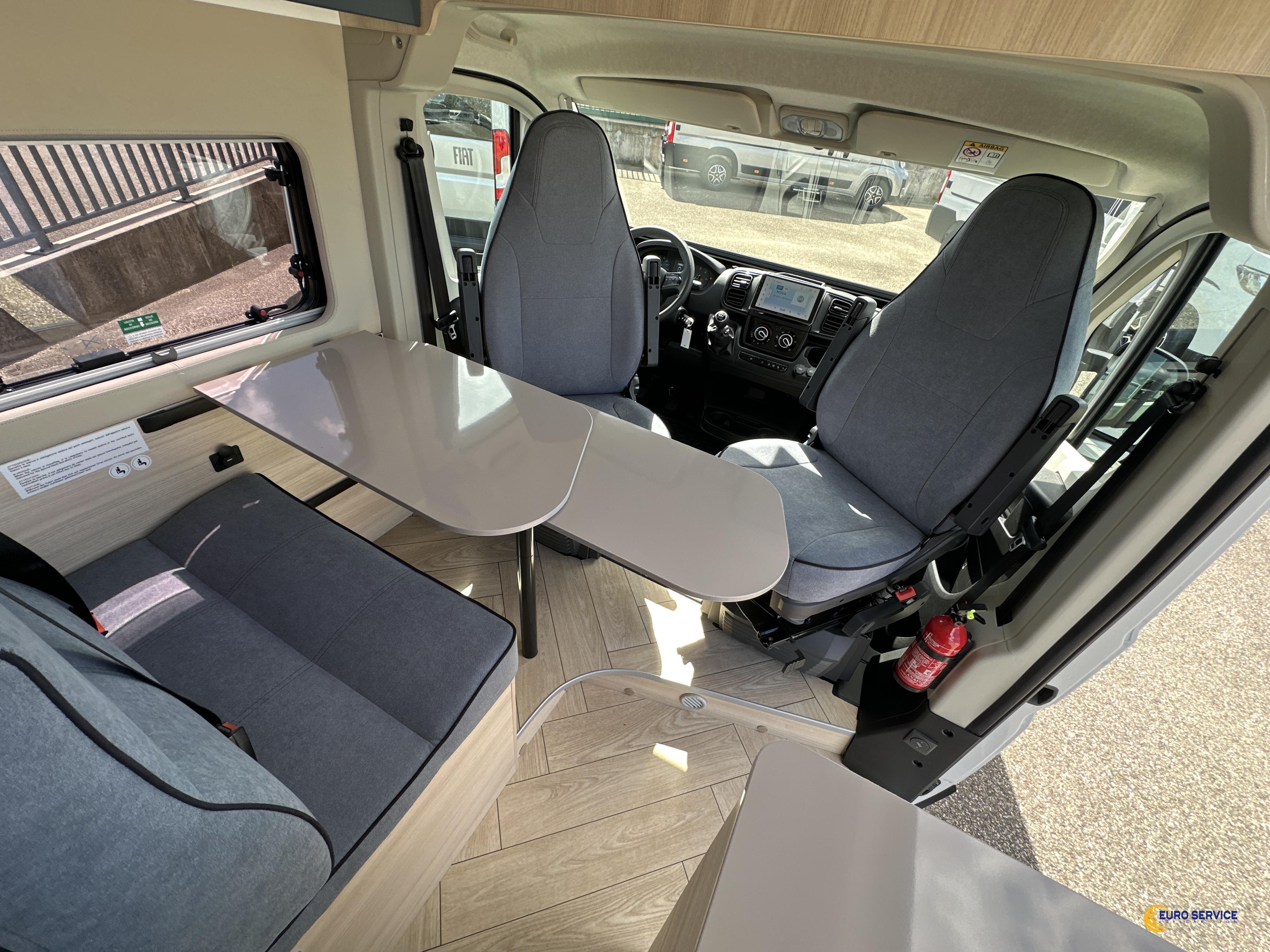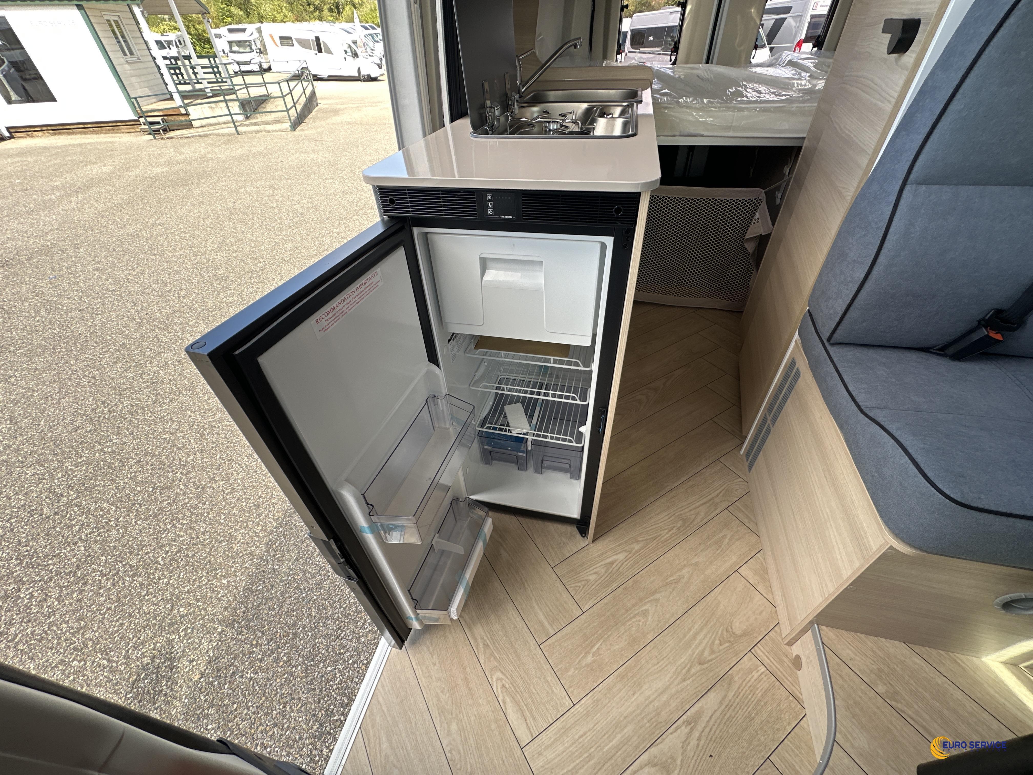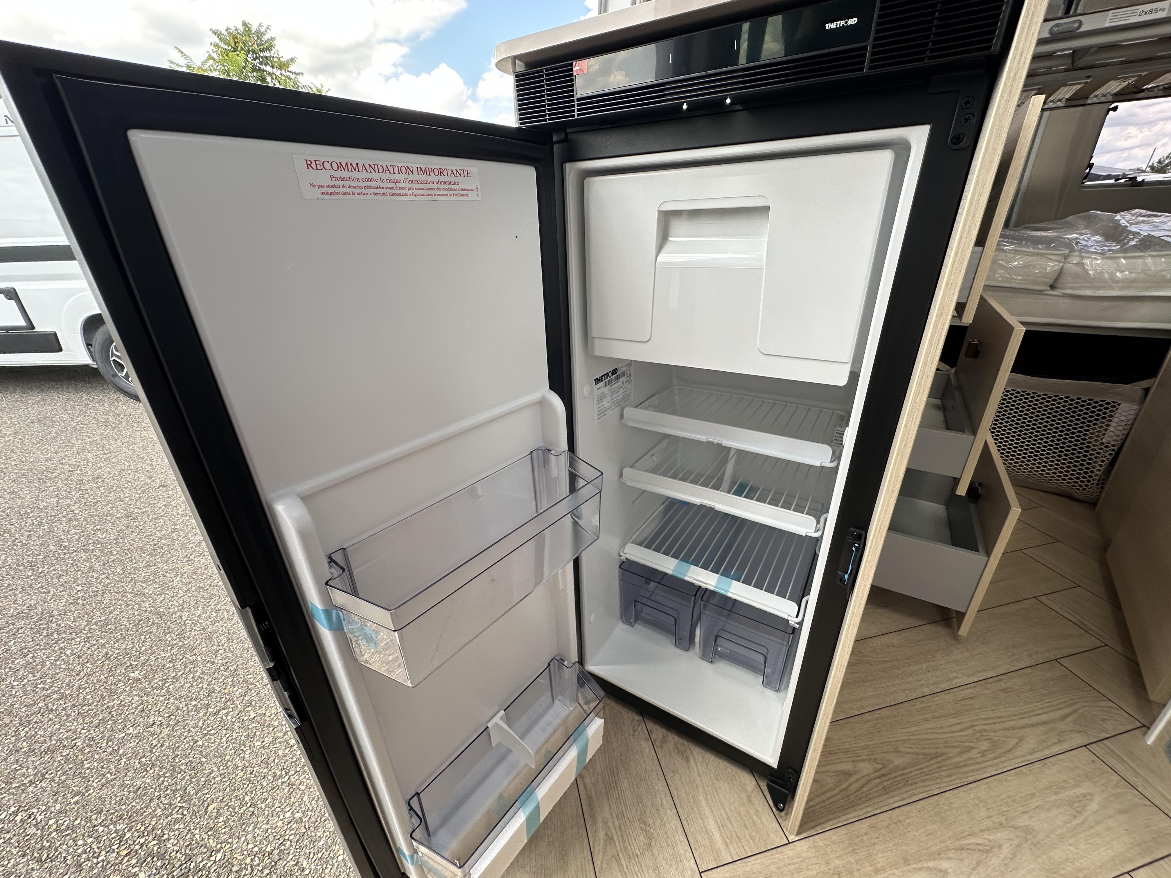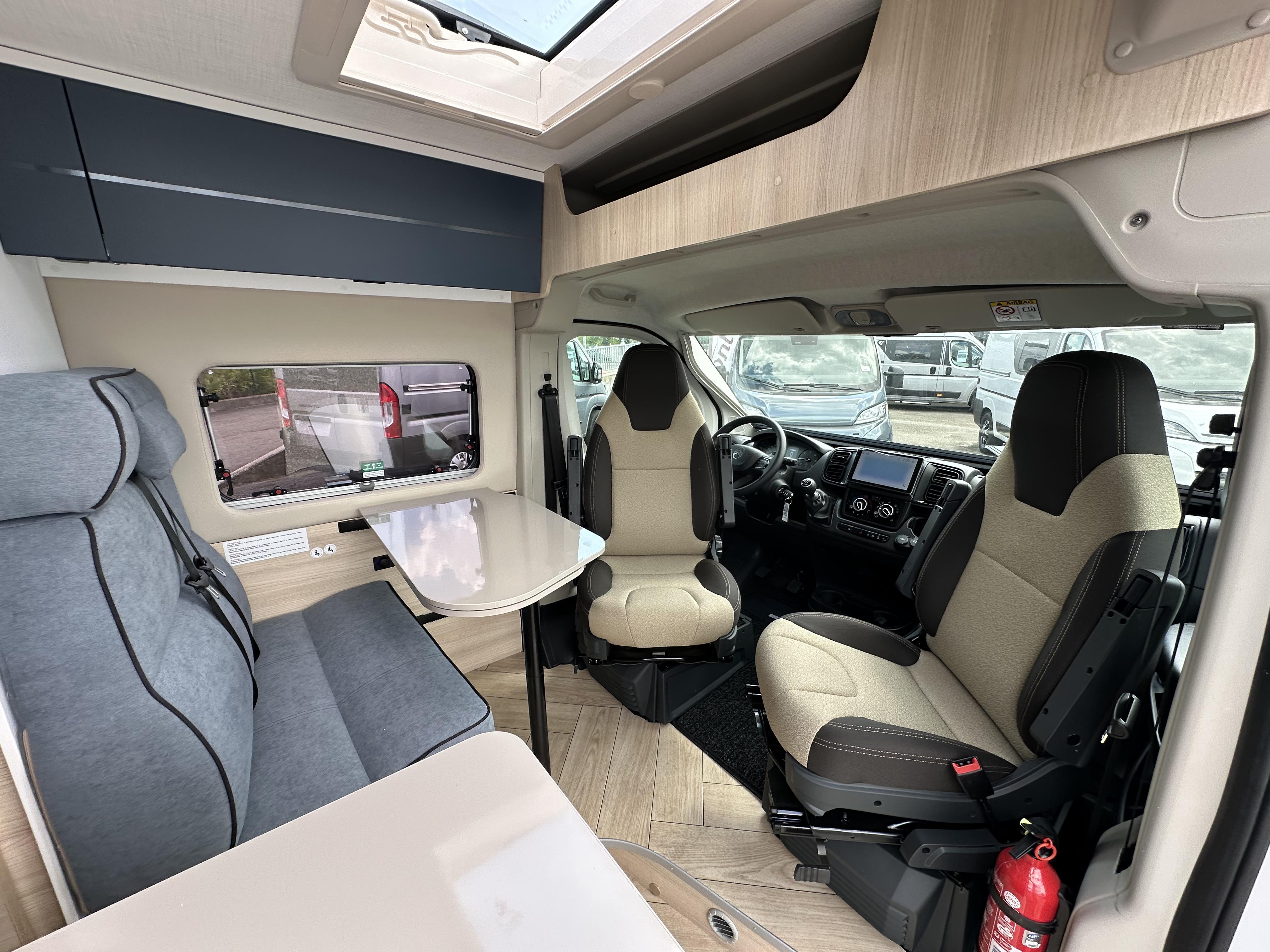 chauffage combi 6000W gasoil, couverture isolante de tableau de bord, rideaux d'isolation thermique des baies, store dinette, réservoir d'eaux usées isolé et chauffé.